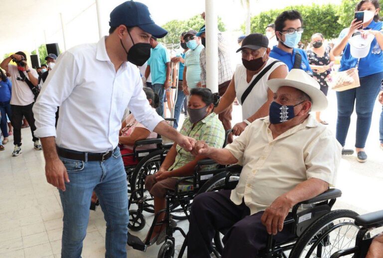 Junto con el titular de la Secretaría de Desarrollo Social (Sedesol), Roger Torres Peniche y la directora general de la Administración del Patrimonio de la Beneficencia Pública del Estado de Yucatán (APBPEY), Zhazil Méndez Hernández, el gobernador continuó con la distribución de aparatos de movilidad a las personas que más lo necesitan, apoyo que llega como producto de sus gestiones ante la Federación.
