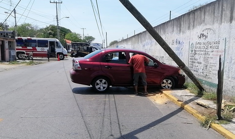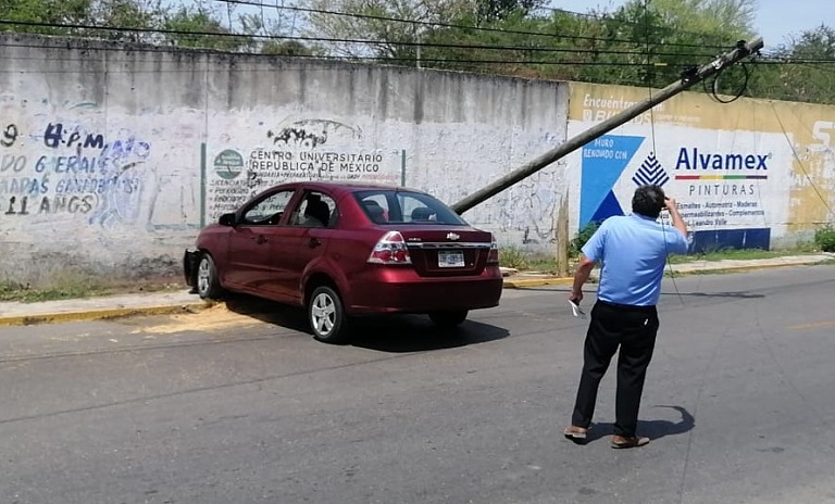 Por el fuerte impacto el auto, con placas ZBF-085-B, derribó un poste de madera y se estrelló contra el muro. Por suerte todo quedó en un susto. La aseguradora se hizo cargo de los daños.
